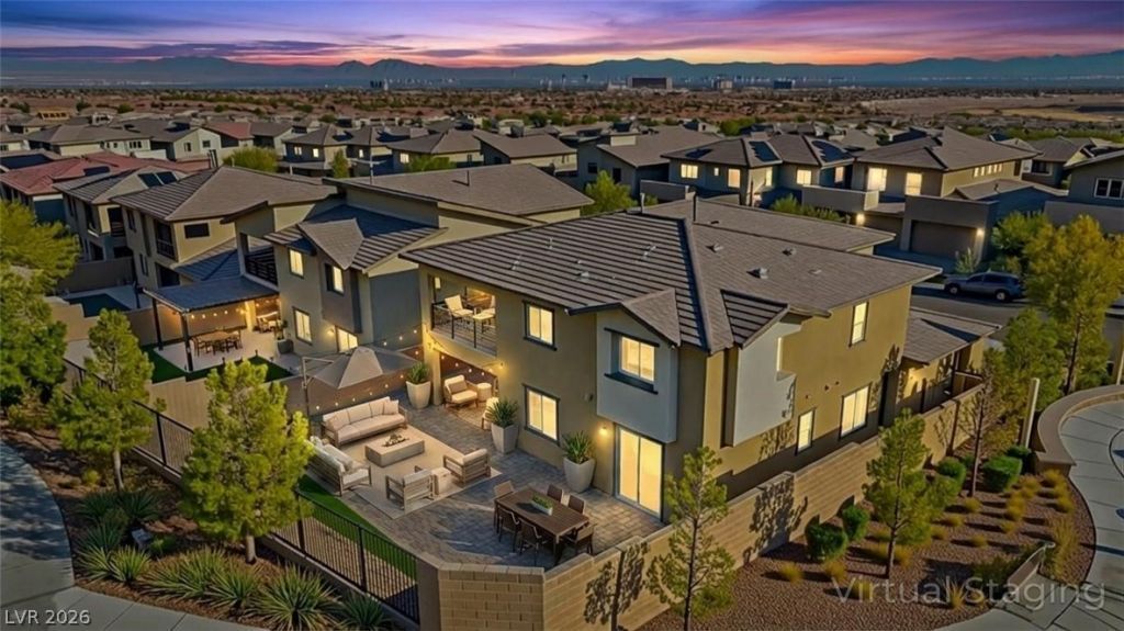 Modern design, a Next Gen suite, and gated Summerlin living?this one stands apart. Welcome to 12404 Aster Hills, located in the exclusive Graycliff community of West Summerlin, surrounded by neighboring multi-million-dollar homes. This 4-bed, 3.5-bath residence offers nearly 3,200 sq ft of thoughtfully designed space, including a private Next Gen suite with its own entrance, living area, kitchenette, and bath ?ideal for multigenerational living or guests. The main level is clean and open, featuring LVP flooring, and a chef's kitchen with quartz countertops, stainless steel appliances, custom tile backsplash, and a large island built for entertaining. Upstairs, a spacious loft connects two secondary bedrooms, while the primary suite is set apart with a private balcony and mountain views. The primary bath features dual vanities, a soaking tub, and separate shower. A true 3-car garage.