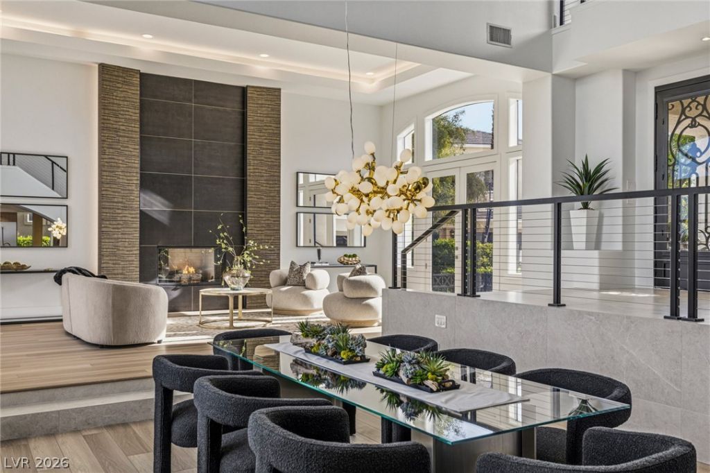 Set within one of Summerlin's most established guard-gated communities, this fully reimagined home in Country Club Hills combines thoughtful architectural design, comfortable livability and sweeping mountain & golf course views. The floor plan has been reconfigured for indoor-outdoor living, with the light-filled main floor areas opening directly to the covered patio & pool. The kitchen features custom rift-cut white oak cabinetry, Taj Mahal & Perla Azul quartzite surfaces, a full suite of Thermador appliances and walk-in pantry. Wake up to mountain views in the primary retreat, complete with sitting area, balcony, dual walk-in closets and spa-style bathroom with soaking tub & oversized shower. Upstairs offers a loft and 2 additional bedrooms with en suite baths. Downstairs includes a guest suite, laundry room, powder bath & 3-car garage. Positioned behind the tee box of the 14th hole of TPC Summerlin, the home captures golf course & mountain views while maintaining privacy from play.