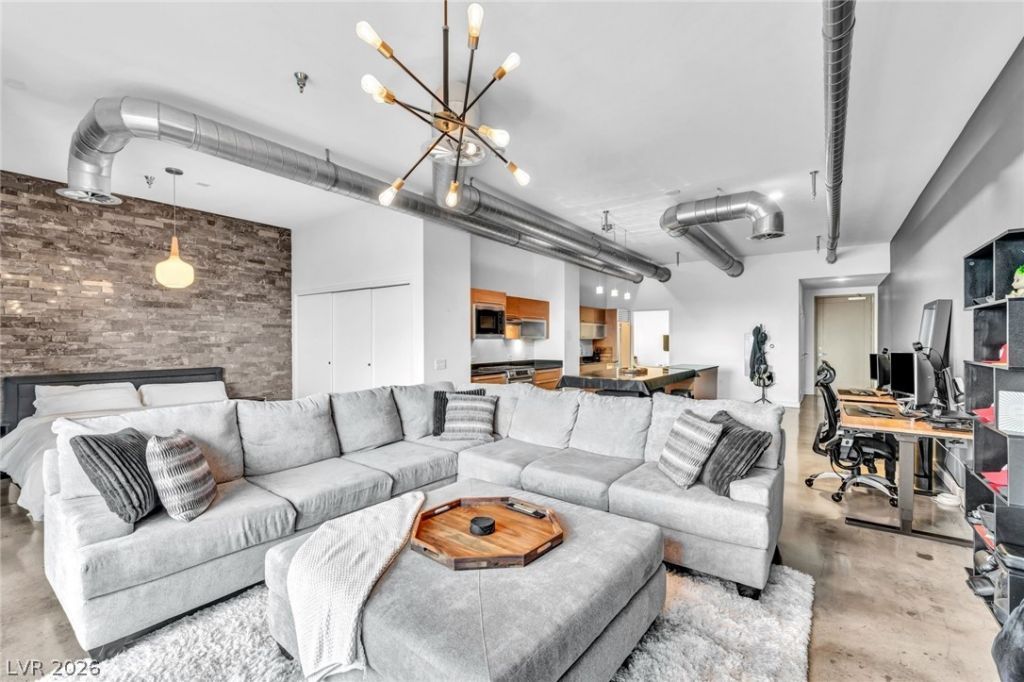 Experience elevated loft-style living in the full-service Newport Lofts, just moments from the vibrant Las Vegas Arts District in the heart of Las Vegas. This modern high-rise residence showcases sweeping views of the downtown skyline, surrounding mountains, and the iconic Strip, paired with an open-concept design featuring European-style cabinetry, granite countertops, stainless steel appliances, a gas cooktop, custom lighting, and a sleek bathroom. Thoughtfully designed like a studio with a defined sleeping area, the layout offers added privacy while maintaining an open, airy feel, complete with a custom brick accent wall for true loft character. Newport Lofts delivers a true lifestyle experience with 24-hour security and front desk concierge, a sky lounge, assigned parking, and premier amenities on the 24th floor including a rooftop pool and spa overlooking the Las Vegas Valley, plus a fitness center with stunning downtown views?all just minutes from dining, art, and entertainment.