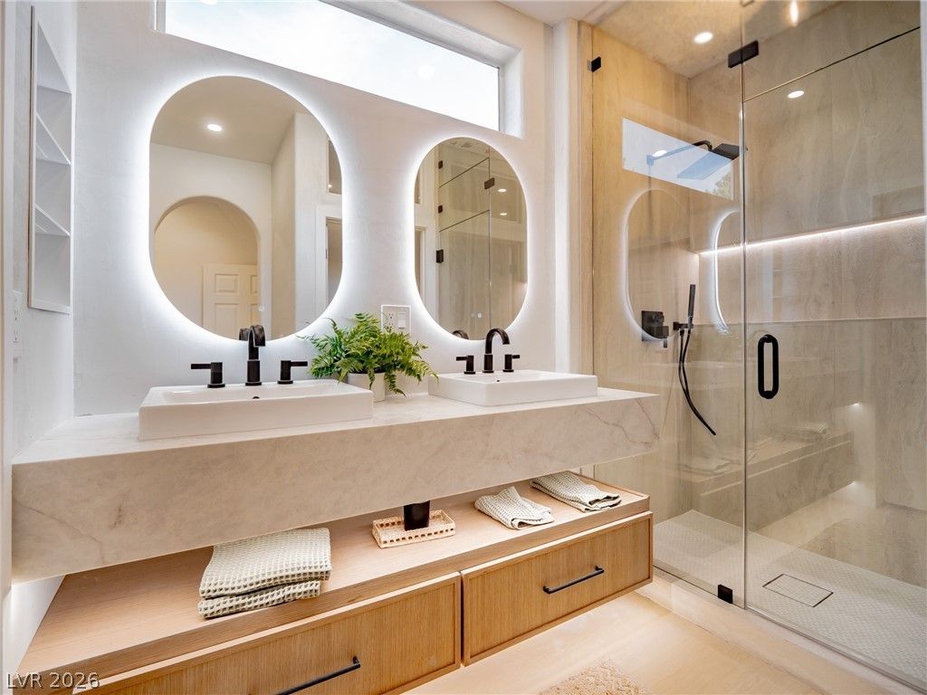 Welcome to 'Casa Lucente. A true one-of-a-kind residency sitting on an elevated, corner lot in Phase 3 Sun City Summerlin, where Tuscan warmth & Cabo-inspired ease meet contemporary design. From micro cement accent walls, to the Samsung Bespoke Appliance package... we spared no expense with this renovation. From new outlets & switches to the door trim... we prove it. Every project by DJJ Designs is thoughtfully given its own distinctive name & crafted w/ a design language entirely its own... resulting in a residence that stands apart as a genuine 1/1 work of architectural art. True quality is the foundation of every home we create & THAT is what sets our work apart from every other renovation in Sun City. We take pride in using American-made materials throughout the home to ensure lasting craftsmanship & reliability. Every plumbing fixture is Delta, backed by a lifetime warranty. Every door knob & handle is Kwikset. Every surface throughout the home is sourced from MSI Surfaces.