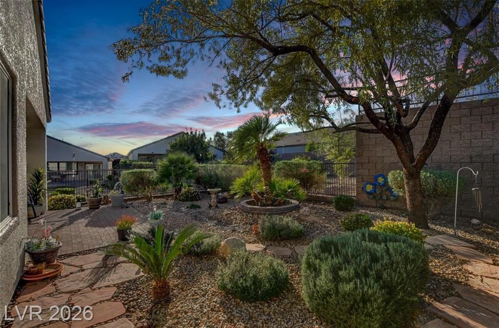 Experience vibrant living in the sought-after Solera 55+ community! Nestled at the end of a quiet cul-de-sac with no building behind, this stunning single-story home features a gated courtyard, stone-accented exterior, and sweeping mountain views. Inside, tile flooring, custom shutters, and ceiling fans create a warm, elegant feel. The kitchen shines with granite countertops, stainless steel appliances, dining nook, and a water filtration system. The inviting living room with custom blackout blinds is perfect for relaxing or entertaining. The spacious primary suite offers a walk-in closet, dual vanities, and step-in shower, while a versatile secondary bedroom and full bath add flexibility. Enjoy a serene, professionally landscaped backyard with covered patio, private sitting area, and updated irrigation. Complete with an oversized 2-car garage, new water softener, fresh exterior paint, new insulated garage door, and solar at an amazing discount! Minutes to the Solera Community Center!