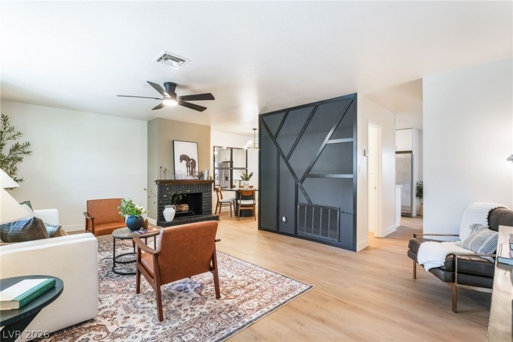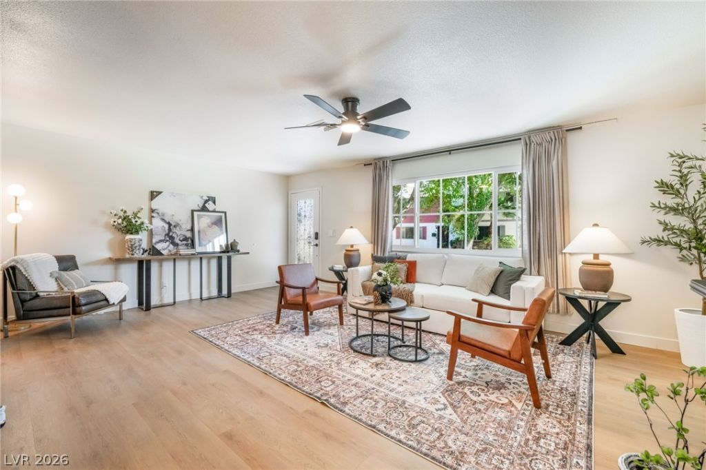 Nestled in the heart of Las Vegas, this completely remodeled and fully furnished 2-bedroom, 3-bath townhouse offers stylish, modern living. Inside, you'll find thoughtful updates throughout, including luxury vinyl flooring, contemporary lighting and ceiling fans, new windows and doors, and recessed lighting that brightens every room. The kitchen is a standout, featuring quartz countertops, custom shaker cabinets, stainless steel appliances, and a chic herringbone backsplash. The bathrooms shine with custom vanities, tiled showers, and modern hardware. The open-concept living and dining areas provide a welcoming space for everyday living and entertaining. For buyers seeking a turn-key opportunity, this home can be purchased fully furnished. Located in a convenient Las Vegas setting, it combines convenience with a stylish, low-maintenance lifestyle. Schedule your tour today!