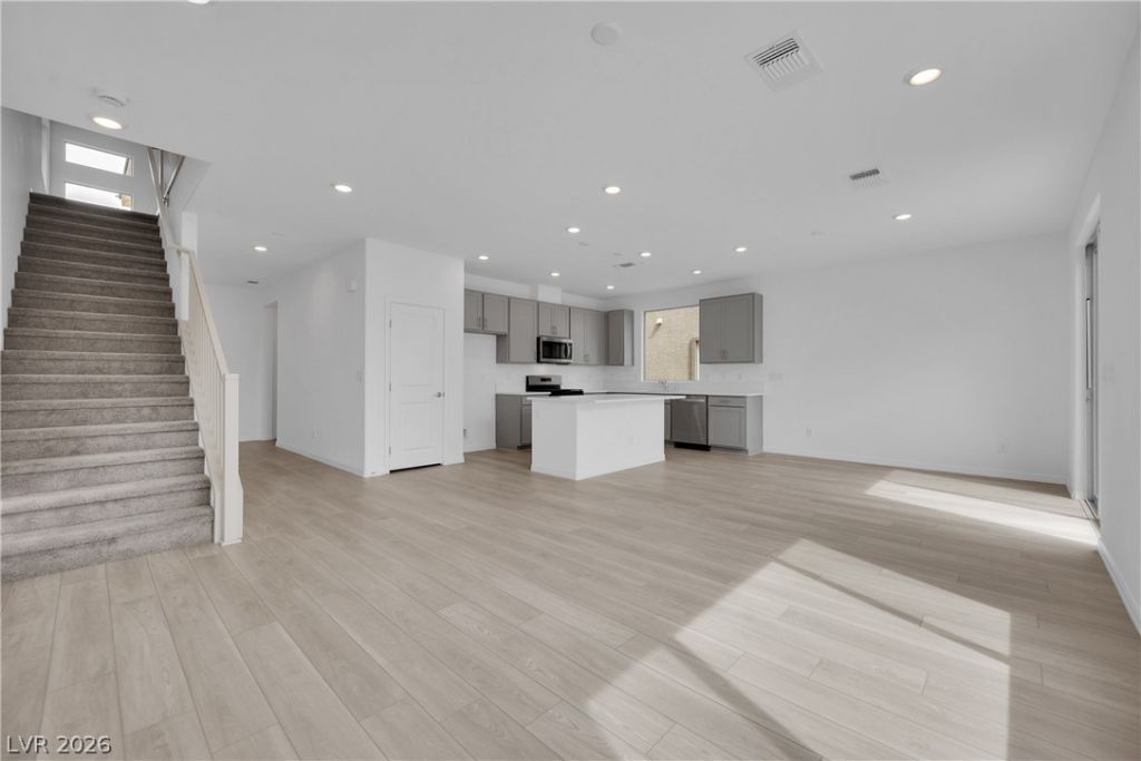 Rent is negotiable for tenants who provide their own appliances. Beautiful brand-new 5Bed/3Bath home with a 2-car garage located in Southwest Las Vegas. This home features 1 bedroom w a full bath on the first floor. The open-concept living, dining, and kitchen areas feature vinyl plank flooring, quartz countertops, a pantry, and a large island, perfect for everyday living and entertaining. Upstairs offers 4 bedrooms, primary suite with a walk-in closet, dual sinks, and a walk-in shower, along with a versatile loft ideal for a home office or media space. Energy-efficient upgrades include Low-E windows, radiant barrier roofing, and a tankless water heater. Enjoy a nicely sized backyard for outdoor living and entertaining (landscaping photo coming soon). Conveniently located near I-15, Blue Diamond corridor shopping and dining, schools, the airport, Las Vegas Strip, and future high-speed rail access. Be the first to live in this brand-new home. Rent is responsible for sewer and trash.