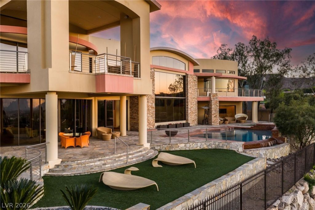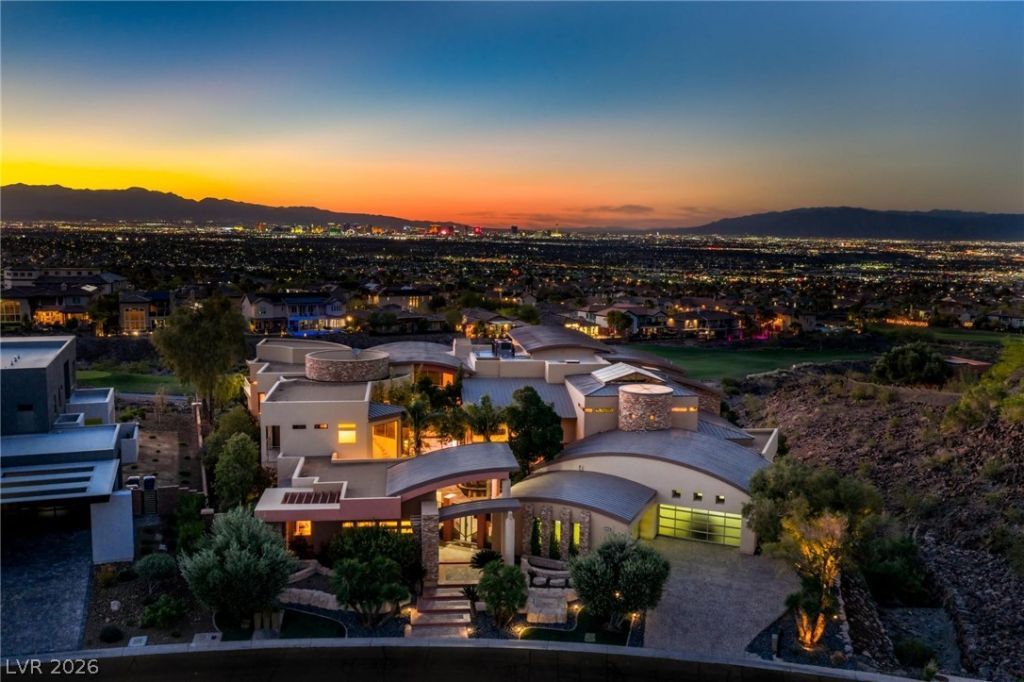 Extraordinary architectural masterpiece located within Henderson's preeminent luxury guard gated community, MacDonald Highlands. This exquisite community features the exclusive Dragon Ridge Country Club. As you enter this one-of-a-kind estate you will experience unequaled elegance at every turn. Starting with the private courtyard you are greeted by wandering streams, lush tropical landscaping, and stunning modern design. Property features include an elevator, multiple private guest quarters, movie theater, expansive living spaces including a fitness center with views of the World-Renowned Las Vegas Strip, a temperature controlled wine room capable of holding more than 1,000 bottles, custom fish tank, arcade, cigar room, indoor-food court, and infinity pool overlooking Dragon Ridge's 10th hole with amazing views of the entire Las Vegas Valley. All bedrooms offer generous yet private spaces including en-suite bathrooms. This incomparable estate is absolutely a must see!!!