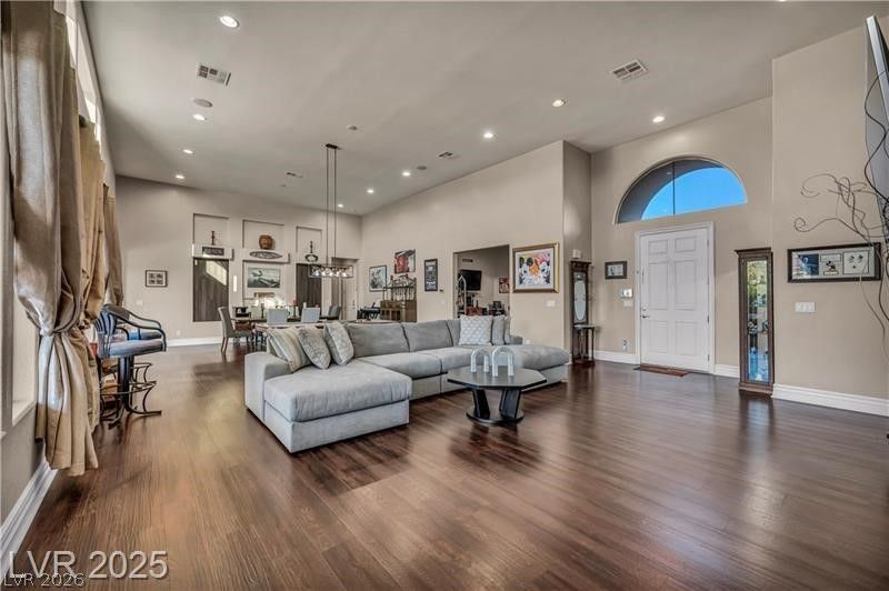 This is the one-story home you've been looking for. It has 2 lg primary suites, next-generational living spaces. These suites are at opposite ends of the home w/ a Great Room in between, 14ft ceilings, large windows & floor-to-ceiling stone fireplace. The gourmet kitchen features an expansive granite central island, custom cabinets, a walk-in pantry, & stainless-steel appliances. There is a centrally located Flex room, perfect for an office, gym or entertainment space. The massive primary suite features a second living room space for quiet relaxation, 2 over-sized closets, a separate walk-in shower, and a soaking tub. The nearly half-acre lot has an oasis yard w/ an over $200,000 custom shaped salt-water pool, grotto with hot tub, slide and waterfalls. Plenty of outdoor coverage to entertain & a fire-pit & dog run. The home has surround sound, an alarm system with cameras, an electric bidet, mountain views & a 3 car garage. Owner acquired a new appraisal showing great property value.