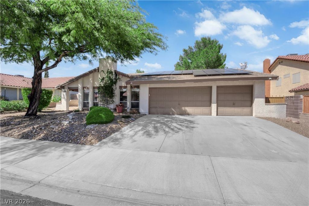 Nestled on a pristine cul-de-sac, this thoughtfully designed single-story home offers 4 bedrooms and 2 full baths. The sunlit living and dining spaces are highlighted by a vaulted ceiling and a classic brick fireplace, creating a warm and inviting setting for gatherings and everyday comfort. The kitchen offers a cozy dining nook and a breakfast bar, opening seamlessly to the family room with sliding doors that extend the living space outdoors. A peaceful primary suite also enjoys direct access to the covered patio, enhancing the home's easy indoor-outdoor lifestyle. Step outside to a truly special backyard -spacious and serene- framed by mature trees and finished with elegant paver blocks, ideal for morning coffee, weekend entertaining, or quiet evenings. A 3-car garage with a separate workshop adds exceptional versatility, while solar panels provide valuable energy efficiency. Conveniently located near shopping, dining, and everyday amenities.