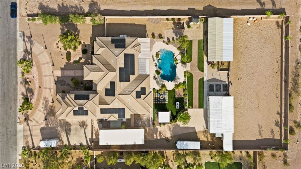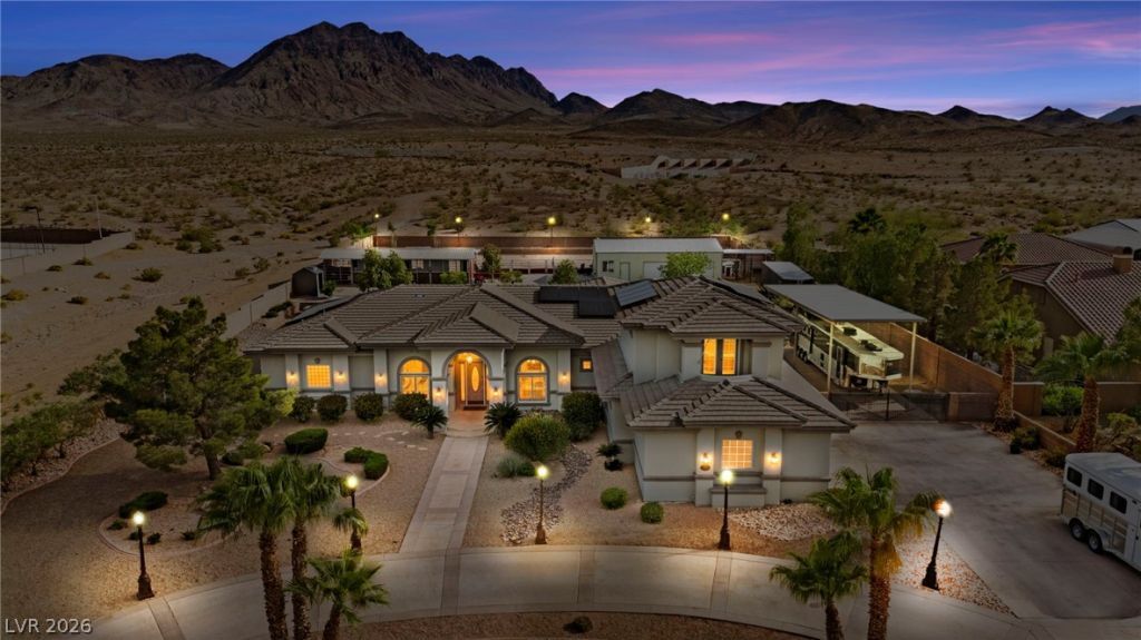 This house truly has it all! 4246sqft home situated on a private acre lot backed up to city of henderson public use land! 4 Horse stalls, a riding corral, attached 3 car garage, plus a detached 3 gar garage with shop. Fits the needs of any riders, horses or all terrain. Huge covered RV parking, perfect for toy or horse haulers! Enjoy the back yard with a beautiful lagoon style pool and custom outdoor kitchen! The house itself is simply amazing! 4 bed 4 bath that lives like a one story home. So much space with a formal dining room, living room, huge family room, and private office. Massive kitchen with double oven, stainless steel appliances, granite countertops, oversized island and amazing mountain and backyard oasis views! This home is truly one of a kind and has everything that a future homeowner in Mission Hills is looking for. Mission Hills is a destination for enjoyers of trail riding and outdoor lifestyle, with the benefit of being close to the necessities of everyday life
