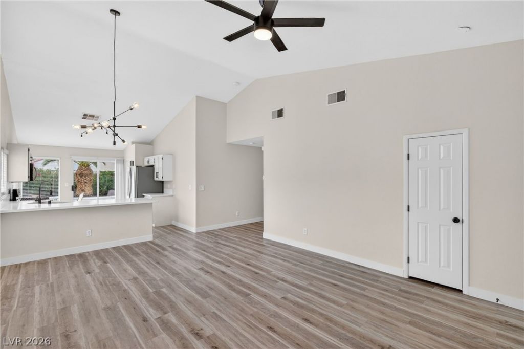 Welcome to this beautifully updated single-story home in a desirable neighborhood with low HOA, offering the perfect blend of comfort and style. Freshly painted and move-in ready, this residence features soaring high ceilings that create an open, airy feel throughout. Luxury vinyl plank flooring runs through the main living areas and bathrooms, combining durability with modern appeal. The kitchen and bathrooms were fully renovated in 2020 with sleek finishes, updated cabinetry, and contemporary design. Step outside to a stunning backyard oasis with mature trees providing shade and privacy, along with a sparkling pool and spa?perfect for relaxing or entertaining. This home truly delivers exceptional indoor-outdoor living. Primary bedroom has high vaulted ceilings, a remote controlled ceiling fan, large walk-in closet and updated bath with double sinks. Home is conveniently located close to the highway, shops, restaurants and groceries. Don't miss your chance to make it yours!