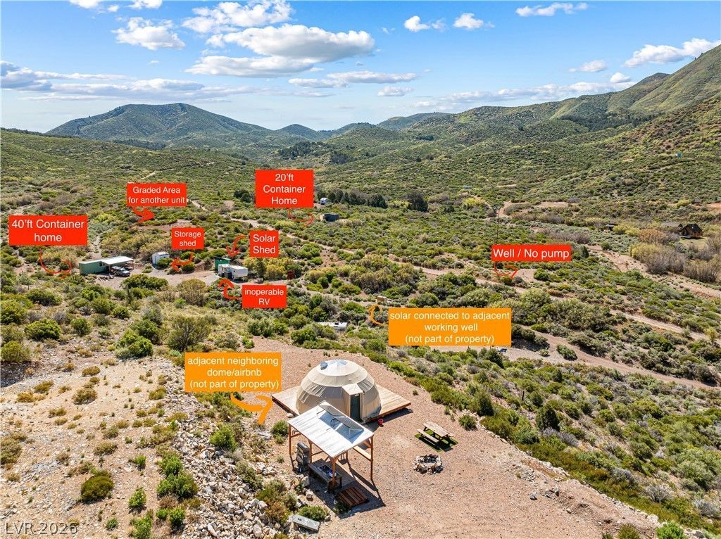 2.07 acres in scenic Lovell Canyon featuring multiple income-producing setups. Property includes a green 40' container tiny home with new deck, cover, and connected solar shed, plus a separate gray 20' container with its own deck and independent solar system. Well is in place (pump needed); currently shares neighboring well powered by this property's solar. WiFi provided via Starlink. Additional features include a white storage shed and a pre-graded pad ready for another tiny home. Each unit is positioned in its own private, secluded area. Ideal for a personal retreat, multi-unit Airbnb opportunity, or live-in investment with strong upside potential. OWNER WILL CARRY with Negotiable Terms/significant downpayment.